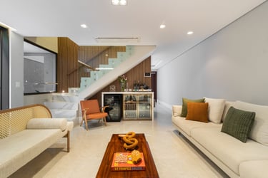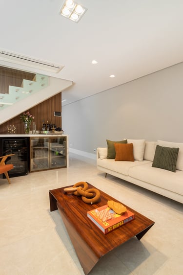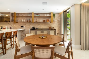A casa foi completamente reformada e a Barlô atuou na definição de elementos pontuais como a idealização da fachada, escolha de revestimentos, mobiliários e também toda a parte decorativa. E é claro que nossa premissa sempre foi conservar ao máximo toda a memória que esta casa e que esta família carrega.